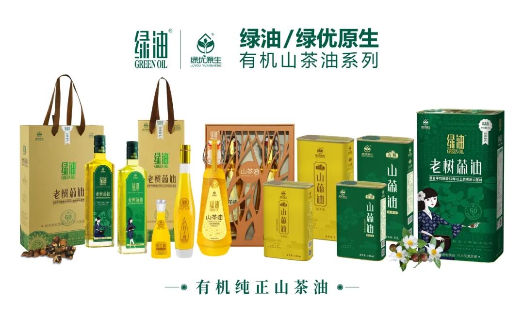 公司目前推出了“绿油”老树茶油、“绿优原生”山茶油,2个高端植物山茶油品牌,以植物山茶籽原液打造的“花果树”护肤品、洗护用品、洗涤用品品牌。为了追求更高品质,绿油与高等院校及科研机建立油茶产品研发机制,融合千年古法压榨与现代科技,每一滴山茶油都需经28道人工甄选、116层过滤工序、零下1°冬化分离等品质打造环节,确保每一滴山茶油更纯净健康!