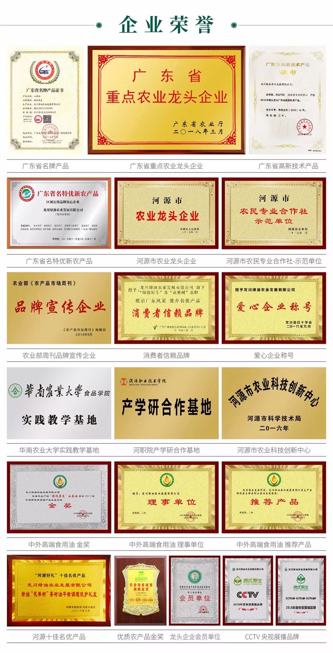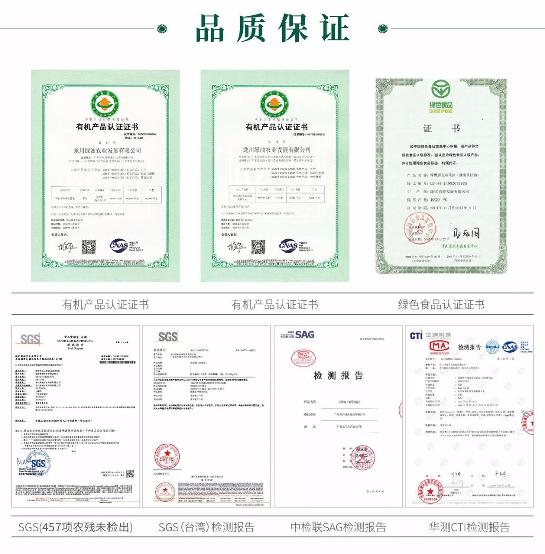 绿油坚持只榨取山茶籽第一道油,承诺每一滴山茶油都是100%初榨纯山茶油,传承千年古法压榨,绿油山茶油都需经28道人工甄选、116层过滤工序、零下1°冬化分离等品质打造环节,确保每一滴山茶油有害物质零残留,更纯净健康!用匠心精神为全国人民打造更高品质的绿色国油,这是绿油农业董事长骆东梅先生对梦想的坚持,更是对品质的坚持。